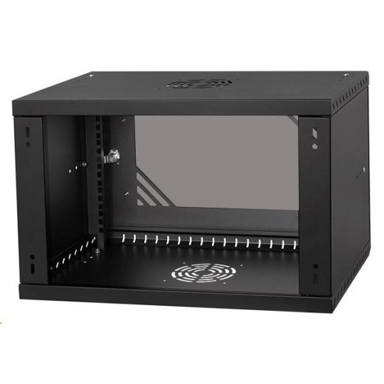 LEXI-Net 19" nástěnný rozvaděč Basic 6U, šířka 520mm, hloubka 450mm, skleněné dveře, bez zad, rozložený, černý