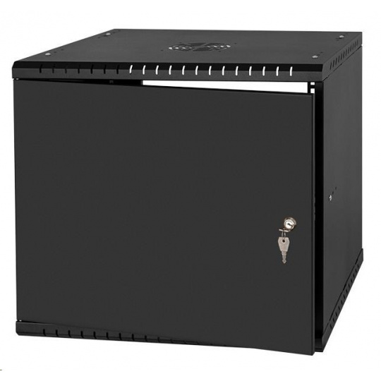 LEXI-Net 19" nástěnný rozvaděč Basic 9U, šířka 525mm, hloubka 450mm, plechové dveře, bez zad, rozložený, černý