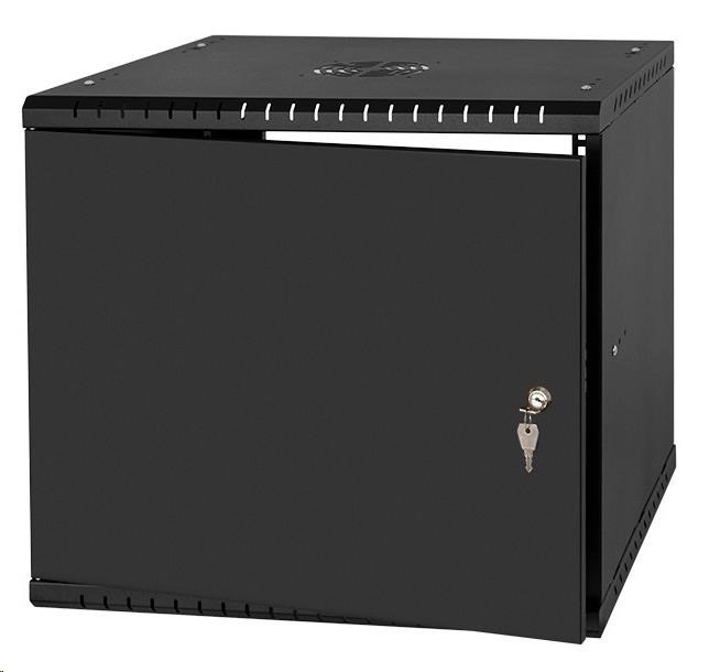 LEXI-Net 19" nástěnný rozvaděč Basic 9U, šířka 525mm, hloubka 450mm, plechové dveře, bez zad, rozložený, černý