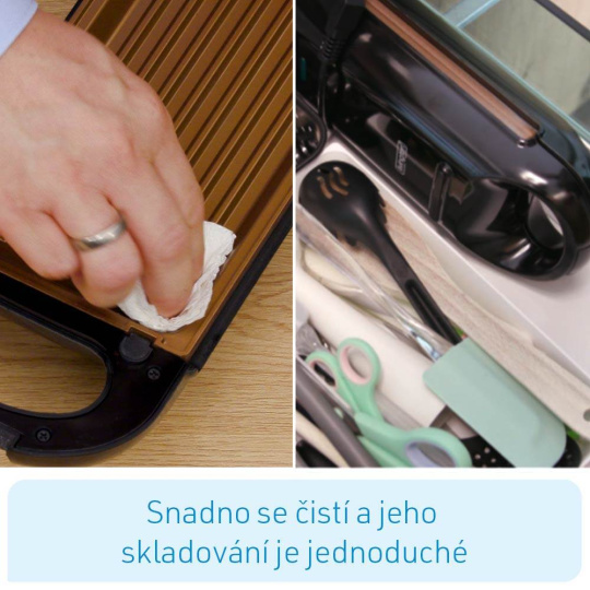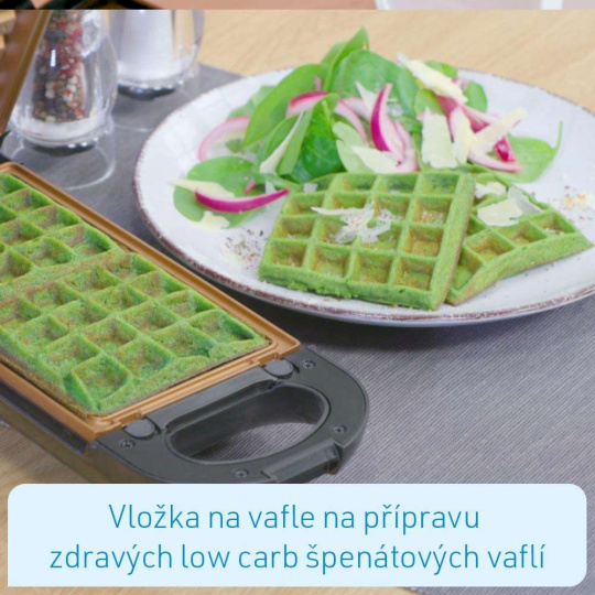 - Včetně 3 vyměnitelných vložek pro přípravu XL omelet, grilovaný specialit a vaflí