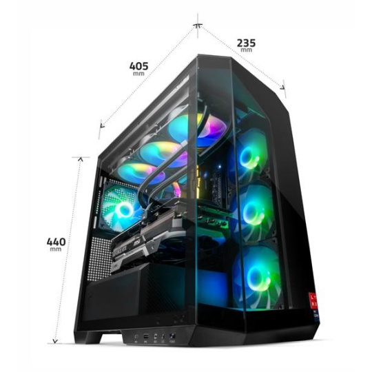 Stylová a vzdušná ARGB skříň s panoramatickým výhledem na komponenty. Nabízí perfektní airflow, jednoduchou správu kabeláže a efektní podsvícení.