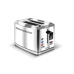 Široké otvory pro 2 plátky pečiva. Digitální panel s dotykovým ovládáním. Funkce rozmrazování, ohřevu a okamžitého přerušení provozu. Možnost nastavení 6 úrovní opečení. Paměť nastavené úrovně opečení. Výsuvná miska na drobky. Automatické centrování a vysunutí pečiva. Nerezový povrch s technologií proti otiskům prstů. Automatické vypnutí. Uskladnění napájecího kabelu a protiskluzové nožičky. Příkon 730-870 W.