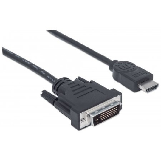MANHATTAN kabel HDMI Male to DVI-D 24+1 Male, Dual Link, Black, 1,8m