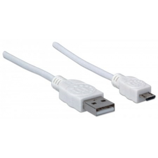 MANHATTAN Kabel propojovací USB 2.0 A Male / Micro-B Male, 1m, bílý