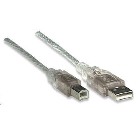 MANHATTAN Kabel USB 2.0 A-B propojovací 3m (stříbrný)