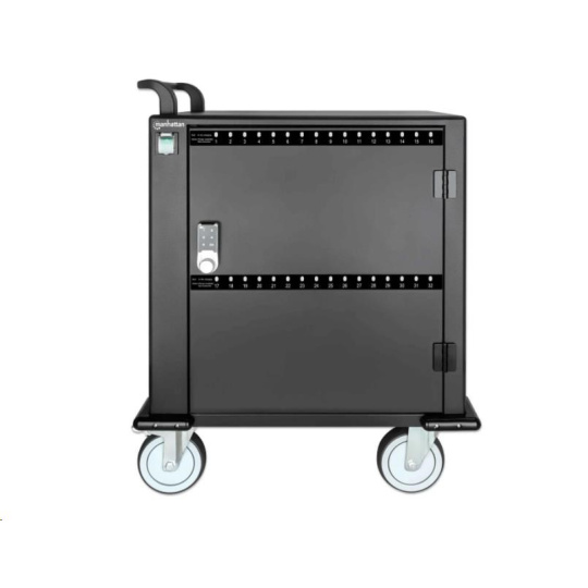 MANHATTAN nabíjecí vozík - 32 portů, 576 W, přepěťová ochrana, tichá ventilace, kovové pouzdro, černá