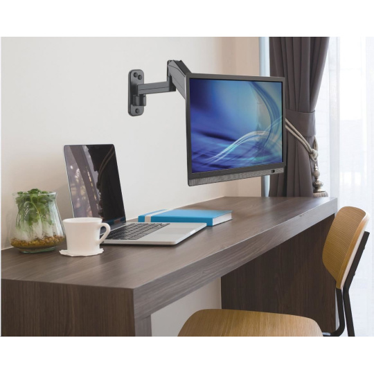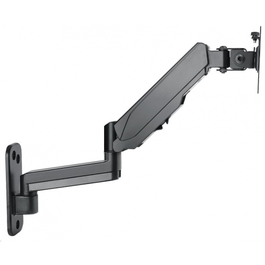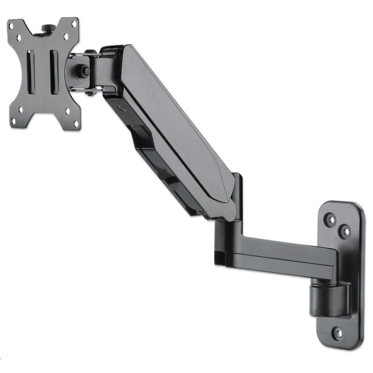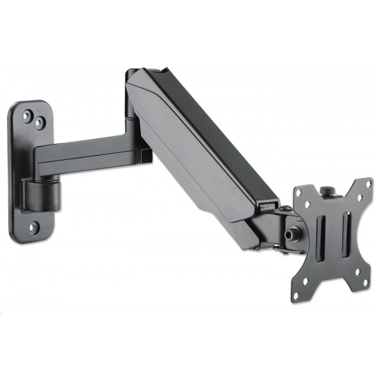 The Manhattan Universal Gas Spring Monitor Mount offers a single-jointed gas-spring arm that securely holds one 17" to 32" TV or monitor. This mount's gas spring promotes easy movement of the display to a more comfortable viewing angle with the lightest touch. Designed to give back much needed desktop real estate and maximize productivity, the Manhattan Universal Gas Spring Monitor Mount provides more flexibility, reach, and overall enjoyment of whatever task is at hand.