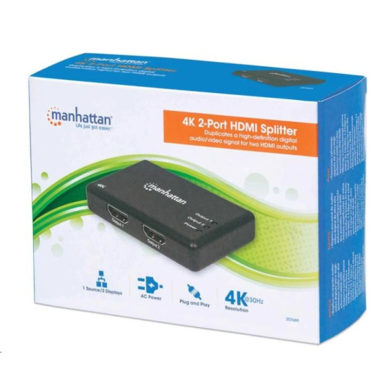 MANHATTAN Splitter HDMI 2 porty, 4K@30Hz, černá