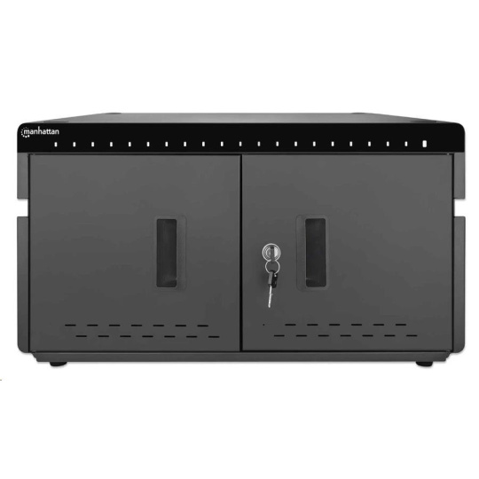 MANHATTAN stolní nabíjecí skříň - 20 portů, 360 W, přepěťová ochrana, tichá ventilace, kovové pouzdro, černá