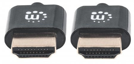 HDMI has become the standard digital connection, delivering the highest-quality audio and video signal over a single cable. With an ultra-thin, tangle-resistant design, gold-plated contacts and a sturdy yet slim PVC jacket, Manhattan Ultra-thin High Speed HDMI Cables are carefully constructed to meet the evolving needs of the ultra high-definition marketplace. Manhattan High Speed HDMI Cables provide the highest resolution possible at 4K x 2K, an audio return channel and a bandwidth of 18 Gbps at 600 MHz. These high-quality cables provide ultra high-definition video and multichannel, digital audio with increased performance characteristics and greater accuracy. Expanded features include Internet connectivity for home entertainment devices using a single HDMI connection. Plus, this cable's unique design makes it easy to handle and shape without worrying about snags and tangles.