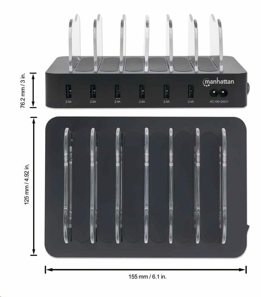 Manhattan USB nabíjecí stanice, 6-Port USB Charging Station, USB-A, černá