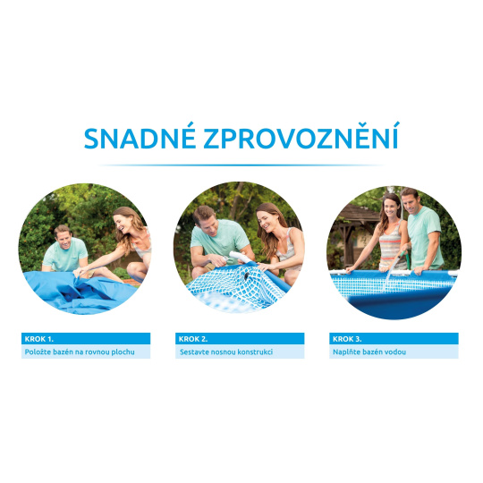 Bazén Florida lze instalovat bez stavebních úprav pozemku. Stačí pouze postavit nosnou konstrukci a napnout na ni bazénovou fólii. Do hodiny od vybalení bazénu se může napouštět voda.
