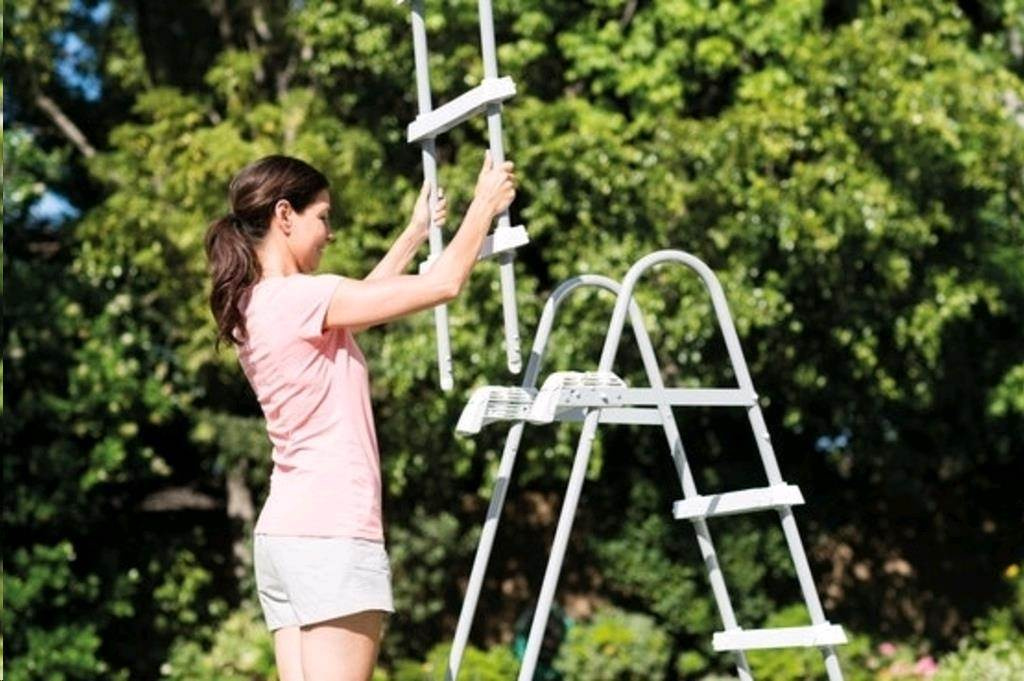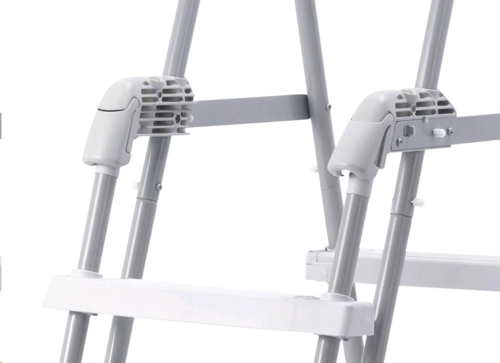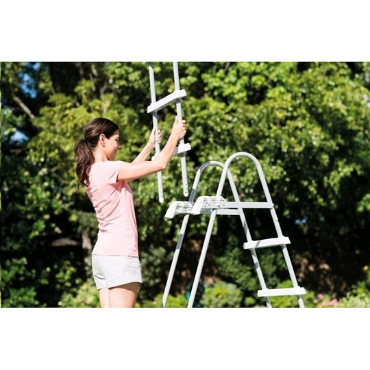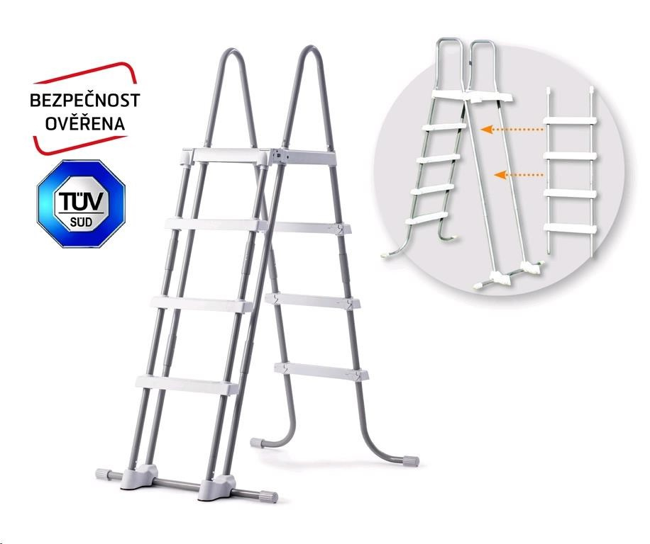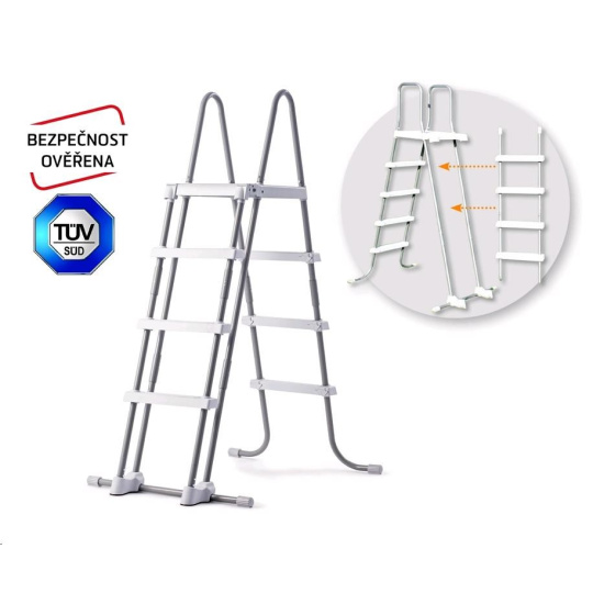 Bezpečnostní schůdky pro bazény do výšky 1,25 m. Šířka schodu je 33 cm. Schůdky mají plastovou horní základnu. Schůdky mají odnímatelná stupátka - při jejich odnětí zamezíte nekontrolovatelnému vstupu dětí do bazénu. Maximální nosnost 136 kg..