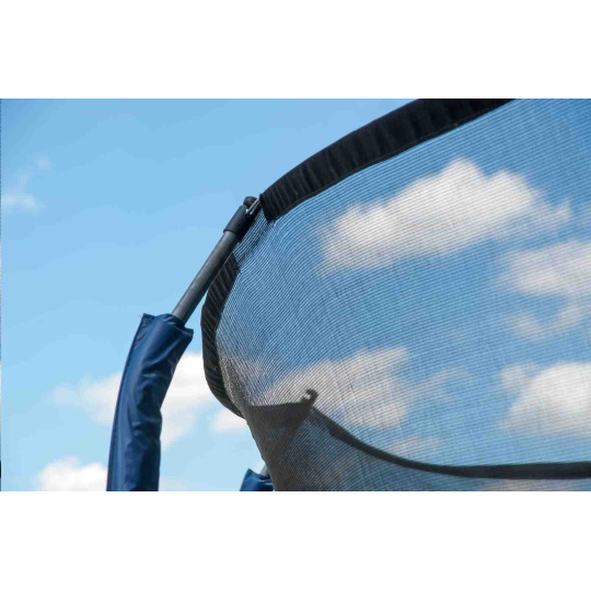 Vnitřní ochrannou síť najdete přímo v balení, nemusíte si ji dokupovat zvlášť. Vnitřní ochranná síť je bezpečnější než vnější síť - brání přístupu skákajícího do části s pružinami. Vstupní prostor je zajištěn třemi přezkami a brání vypadnutí. Tyče jsou obaleny ochranným návlekem z měkčené pěny. Nohy trampolíny jsou samostatné a zvyšují stabilitu celé trampolíny. Spojení tyčí nohou trampolíny a sítě je jištěno speciálními sponami.