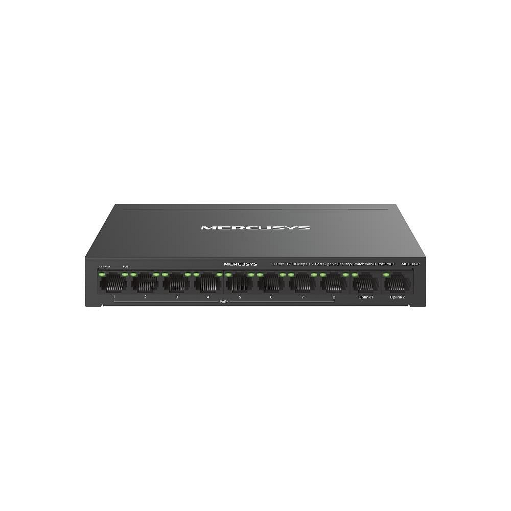 MERCUSYS switch MS110CP (8x100Mb/s,2xGbE,8xPoE+,65W,fanless)