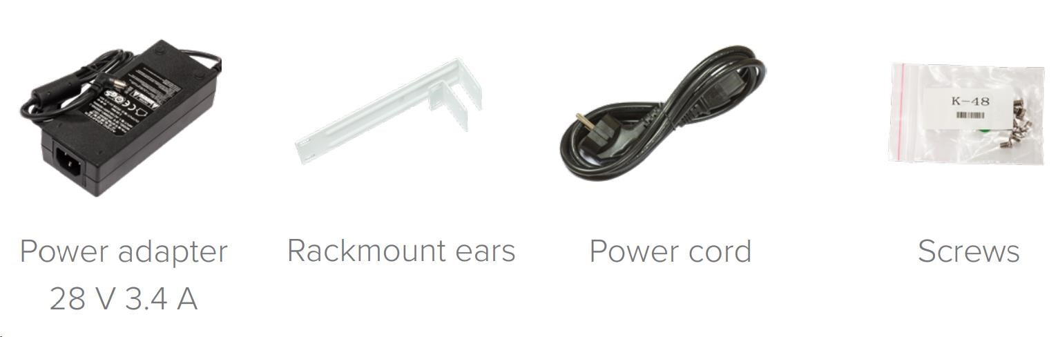 Balení obsahuje: CloudRouterSwitch CRS112-8G-4S-IN v provedení desktop, napájecí zdroj