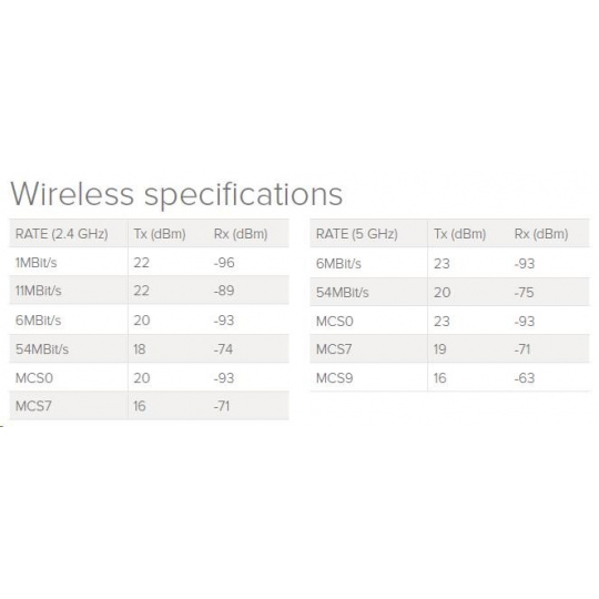 hAP ac lite je nový kompaktní router podporující standard 802.11ac. Je integrována jak 2.4GHz tak 5GHz Wi-Fi.  (2.4GHz využívá 802.11b/g/b, dual chain 1.5dBi anténa, 300Mbps / 5GHz jede na 802.11ac a nechybí ani zpětná kompatibilita s 802.11a/n., single chain - 2dBi anténa, 433Mbps). Tato duální wifi tak dosahuje celkových přenosových rychlostí až 733Mbps. Procesor je taktován na 650MHz a sekunduje mu 64MB RAM operační paměti typu DDR. K dispozici je celkem pět ethernetových portů 100Mbps s podporou PoE in(port1) taktéž out (port5).