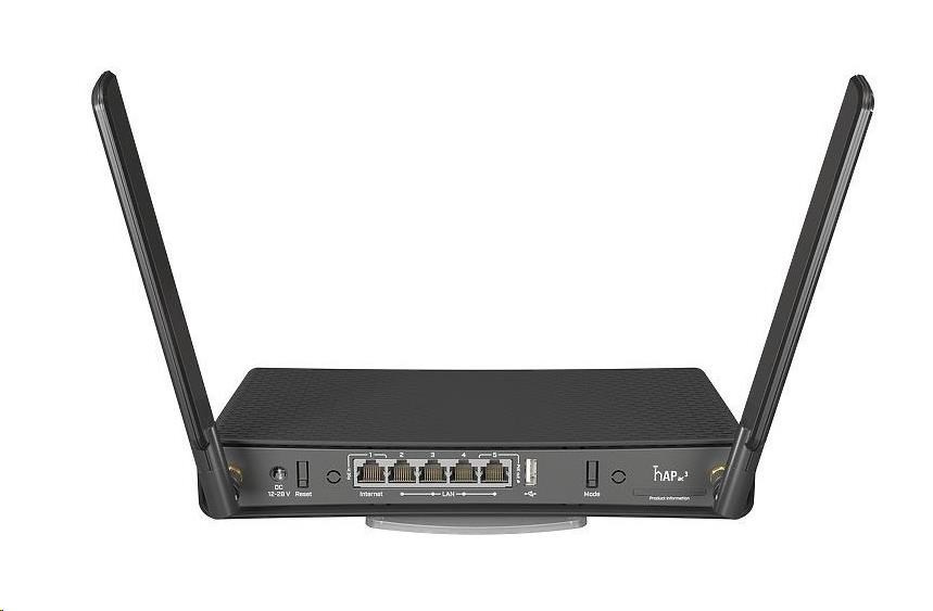 S celkem pěti Gigabitovými ethernety, 256MB RAM a čtyřjádrovým procesorem může hAP ac3 uspokojit i velké a náročné domácnosti. K dispozici je standardní USB port pro možnost rozšíření úložiště. Díky inovativnímu držáku lze zařízení připevnit vertikálně i horizontálně. Sada pro uchycení na zeď je také součástí balení.