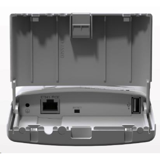 Jedná se o novinku založenou na RB912UAG-5HPnD ve venkovním odolném provedení. K dispozici jsou 2 RSMA konektorry pro připojení antény. Příprava pro rozšíření o další 3 RSMA, v případě osazení mini-PCIe karty, například pro vytvoření dual-band AP. Pod krytem zespod jednotky se nachází USB a ethernetový port, zároveň se svorkou pro zemnící drát.