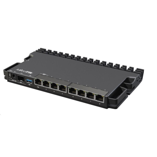 RB5009 je zcela nová řada RouterBOARDů, která přichází s pasivním chlazením, inovativním až futuristickým designem a vysokým výkonem (o 60-90% vyšší než RB4011) o který se zasluhuje 64bit ARM architektura procesoru s taktem 1400 MHz, 1GB RAM typu DDR4 a 1GB NAND uložiště. Router disponuje 7x Gigabit LAN, 1x 2.5Gbit LAN s možností napájení přes PoE (24-57VDC, 802.3af/at) ale také přes DC jack či svorkovnici z levého boku, 1x SFP+ slot a 1x USB 3.0. Právě díky designu kovového šasi je možné s dokoupitelným příslušenstvím namontovat router do 19" racku. Dokonce až 4 routery naráz se díky úsporným rozměrům vměstnají do 1U výšky!