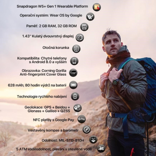 Chytré hodinky TicWatch Pro 5 jako první na světě používají platformu Snapdragon W5+ Gen 1. Přechod z 12nm na 4nm proces znamená nejen dvojnásobné navýšení výkonu, o 30 % menší velikost čipu, ale i dokonce o polovinu nižší spotřebu. V kombinaci s odolným provedením, které splňuje vojenskou certifikaci MIL-STD-810H, a s opravdu bohatou výbavou, která zahrnuje podporu BT 5.2, WiFi, NFC, širokou řadu geolokačních služeb, velké množství nejrůznějších senzorů a obrovskou baterii, Vám tento model nabídne vše, co pro Vaše dobrodružství můžete potřebovat.