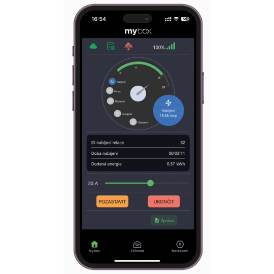 Díky mobilní aplikaci MyBox budete mít stanici pod kontrolou, ať už budete kdekoliv. Ovládejte ji na dálku, sledujte spotřebu nebo vytvořte přístup dalším uživatelům.