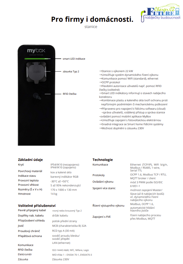 Stanice zapadá do celého ekosystému MyBox. Připojí se k internetu a využívá cloud. Navíc podporuje i propojení s dalšími nabíjecími stanicemi.