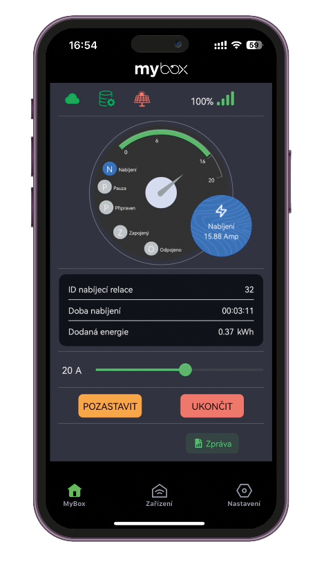 Díky mobilní aplikaci MyBox budete mít stanici pod kontrolou, ať už budete kdekoliv. Ovládejte ji na dálku, sledujte spotřebu nebo vytvořte přístup dalším uživatelům.
