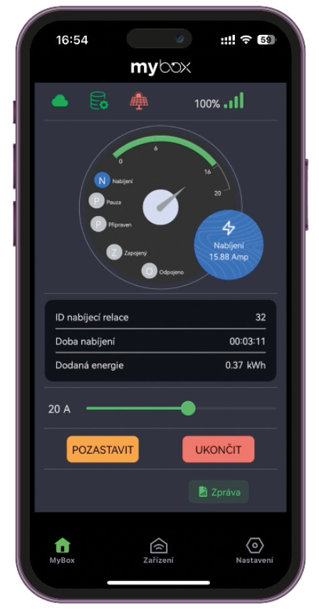 Díky nativní aplikaci MyBox získáte přístup ke stanici odkudkoliv. Budete ji vzdáleně ovládat i monitorovat. Po propojení s fotovoltaickou elektrárnou pak využijete i přebytky energie.