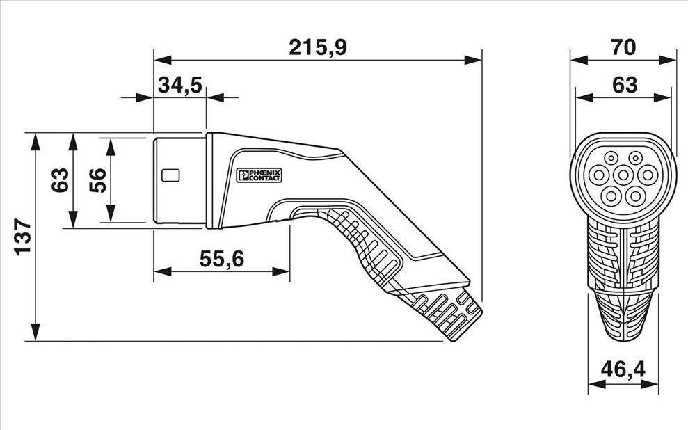 Phoenix Contact 20A nabíjecí kabel 3 fáze Typ 2 je určen pro nabíjení v režimu mode 3, tedy veškeré nabíjení ze soukromých i veřejných AC stanic. Oba konektory mají ergonomický tvar a úchytová část je z měkkého plastu, což zajišťuje snadnou a pohodlnou manipulaci a zapojení. V době, kdy je kabel zapojen, je chráněn proti vniknutí částic a vody. Ochranné krytky mají o stupeň vyšší certifikát ochrany IP54 a umožňují ochranu proti vniknutí prachu.