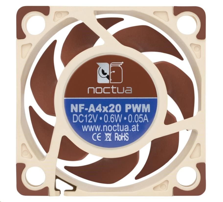 ventilátor, tichý, 12V, rozměry 40x40x20mm, průtok až 9.4m3/h, 1200 až 5000 otáček, 4pin PWM, SSO2