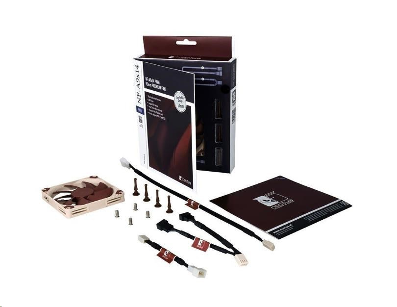 ventilátor, tichý, rozměry 92x92x14mm, hlučnost 13.5 až 19.9dB, průtok 38.1 až 50.5 m3/h, 300 až 2200 otáček, optimalizovaná geometrie a povrch 7 lopatek, samostabilizující olejové ložisko