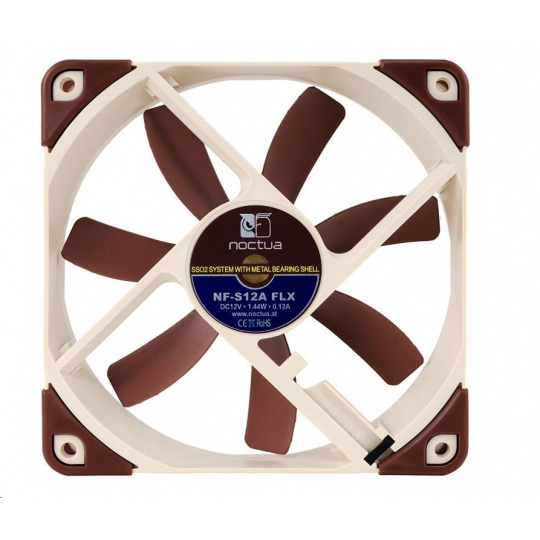 ventilátor, ultratichý, rozměry 120x120x25mm, hlučnost 7.4dB, průtok 107.5 m3/h, 1200 otáček, optimalizovaná geometrie a povrch lopatek, samostabilizující olejové ložisko