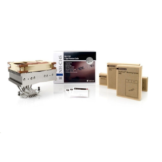 Chladič NH-C14S je nástupce výborného chladiče NH-C14 a představuje špičku ve své kategorii. NH-C14S je top-flow chladič CPU, který je extrémně účinný, vysoce kompatibilní a pozoruhodně nastavitelný. Díky hlubšímu žebrování a renomovanému větráčku NF-A14 PWM poskytuje jedno-větráčkový NH-C14S stejný, tichý chladící výkon jako jeho dvou větráčkový předchůdce, přičemž je ještě univerzálnější. S větráčkem, který je připevněn na vršku žebrování, je chladič kompatibilní s moduly RAM do výšky 70 mm. Pokud je větráček připevněn pod žebrováním je výška chladiče pouhých 115 mm, tudíž je vhodný pro použití ve většině HTPC skříních. Současně nové posunuté uspořádání umožňuje uvolnit vrchní PCIe slot u většiny základních desek typu µATX a ATX. Chladič je vybaven montážní sadou SecuFirm2™ pro mnoho typů patic.
