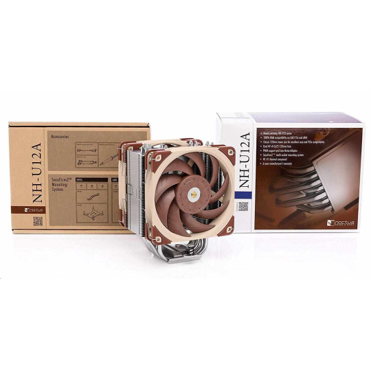 NH-U12A je nejnovější generací tichých, 120mm chladičů prémiové kvality série NH-U12. Kombinací dvou předních větráků NF-A12x25 PWM a kompletně předělaného heatsinku s rozšířeným pokrytím větráků dosahuje nadprůměrných výsledků a dokáže konkurovat i nemálo 140mm chladičům na trhu. V kombinaci s multi-socketovým systémem SecuFirm2™, kvalitní pastou NT-H1 a šestiletou zárukou je NH-U12A samozřejmou volbou s excelentní kompatibilitou a tichostí provozu.