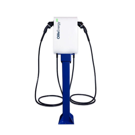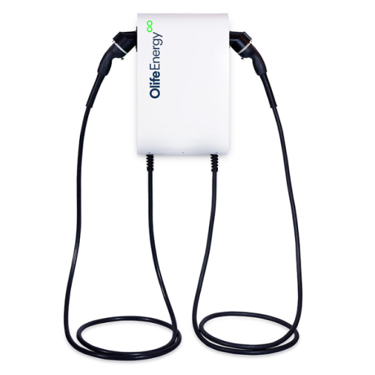 OlifeEnergy DoubleBox je odolná designová nabíjecí stanice v kovovém provedení pro nabíjení všech elektromobilů na trhu EU střídavým proudem (AC) výkonem až 22 kW. Umožňuje rychlé a bezpečné dobíjení dvou elektromobilu zároveň ve vysokém komfortu. Výkon stanice může být nastaven staticky nebo řízen dynamicky pomocí řídící jednoty OlifeEnergy SmartMeter, která brání vybavení (vyhození) jističe a umožňuje tak nabíjet maximální možnou rychlostí.
