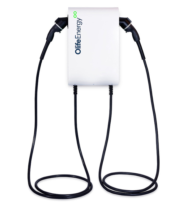 OlifeEnergy DoubleBox je odolná designová nabíjecí stanice v kovovém provedení pro nabíjení všech elektromobilů na trhu EU střídavým proudem (AC) výkonem až 22 kW. Umožňuje rychlé a bezpečné dobíjení dvou elektromobilu zároveň ve vysokém komfortu. Výkon stanice může být nastaven staticky nebo řízen dynamicky pomocí řídící jednoty OlifeEnergy SmartMeter, která brání vybavení (vyhození) jističe a umožňuje tak nabíjet maximální možnou rychlostí.