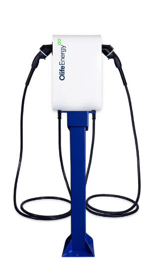 OlifeEnergy DoubleBox je celokovová odolná dobíjecí stanice pro nabíjení dvou elektromobilů střídavým proudem (AC), výkonem až 44 kW (22 kW každý). Určena je pro vnitřní i venkovní použití, s možností montáže na zeď nebo na profil, kotvený do země (sloupek).