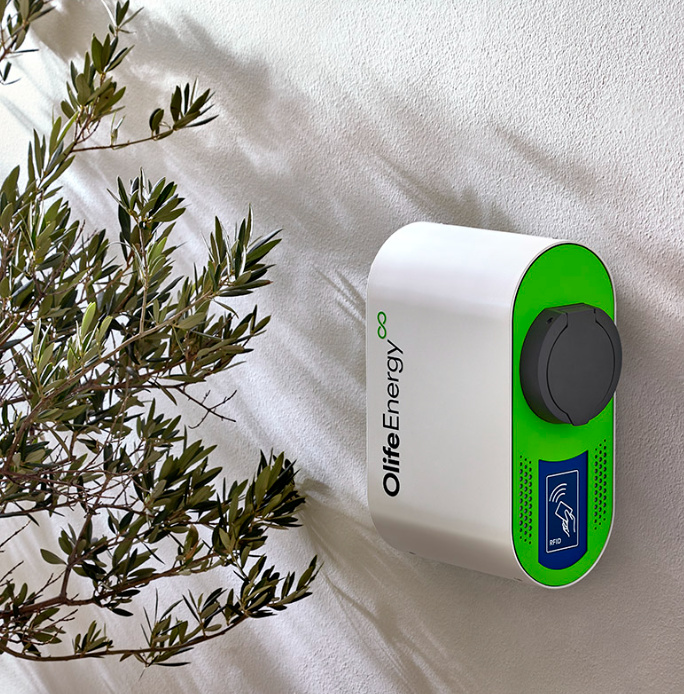 OlifeEnergy WallBox je celokovová odolná dobíjecí stanice pro nabíjení všech elektromobilů střídavým proudem (AC), výkonem až 22 kW. Určena je pro vnitřní i venkovní použití, s možností montáže na zeď nebo na profil kotvený do země (sloupek). WallBox může být vybaven dle přání zákazníka zásuvkou nebo kabelem (Type 2 i Type 1), případně speciálním krouceným kabelem.