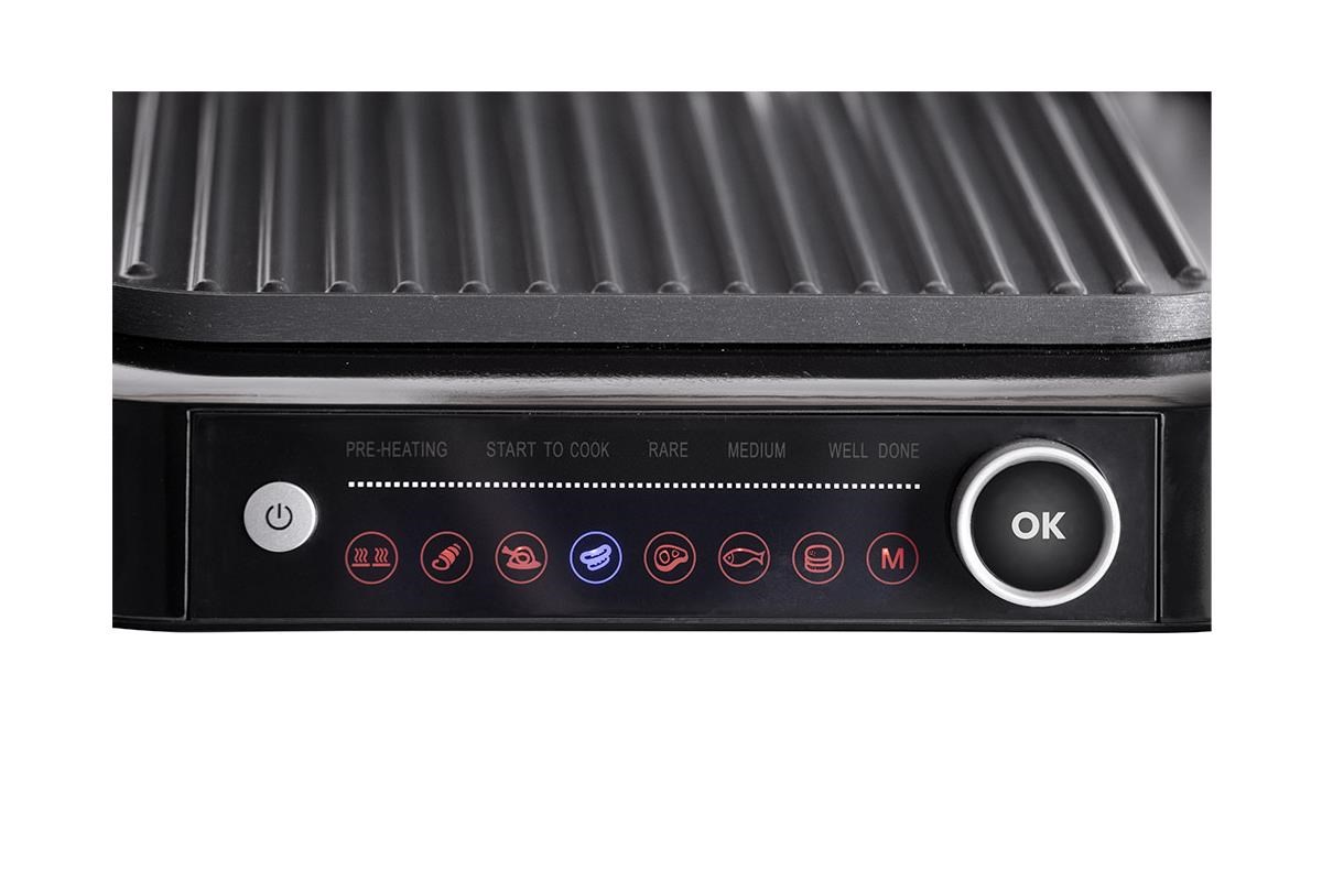 Pro ještě pohodlnější přípravu grilovaných jídel má Grillchef-2 ovládací panel s LED displejem, na kterém si jednoduše navolíte požadovaný režim grilování. Na výběr máte se 6 programů včetně funkce Defrost a manuálního režimu (M).