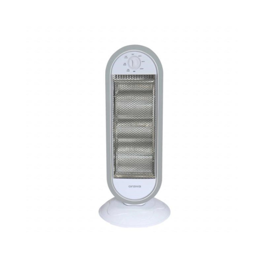 "Halogenový ohřívač se 3 topnými tělesy. Vysoká účinnost ohřevu bez víření vzduchu. 3 úrovně nastavení topného výkonu: 400 W, 800 W a 1 200 W Funkce oscilace. Praktická rukojeť pro přenos ohřívače. Bezpečnostní pojistka vypnutí při převrácení ohřívače. Napájení: 220 - 240V~ 50 - 60Hz, 1 200 W ".