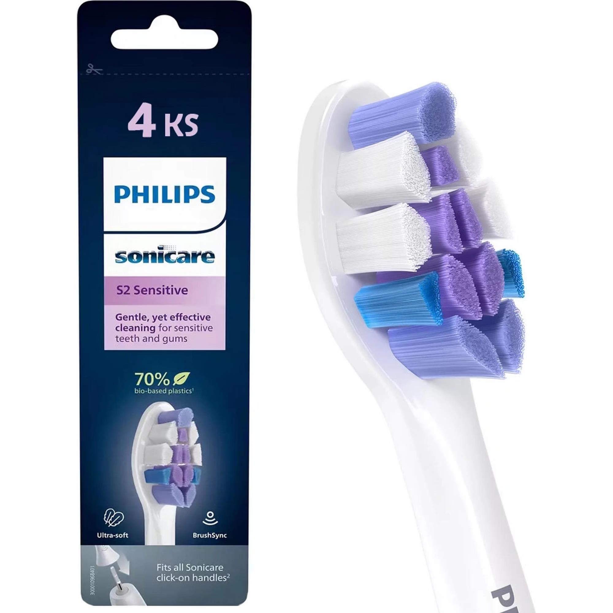 Philips HX6054/87 Sonicare Sensitive S2 4 ks, náhradní hlavice, standardní hlavice, nasazovací, bílá