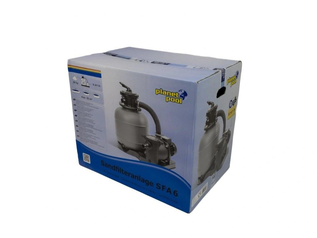 Písková filtrace je srdcem každého bazénu, které zajišťuje, aby voda v bazénu byla kvalitní a krásně čistá. Filtrace SFA 6 je určená pro bazény s objemem do 35 m3. Filtrační nádoba je vyrobena z kvalitního polypropylenu, pojme 20 kg filtračního písku a odolává korozi a běžné bazénové chemii. Filtrace má výkonné čerpadlo o výkonu 400W a je vybavena předfiltrem hrubých nečistot, ve kterém se zachytí všechny větší nečistoty. Součástí filtrační nádoby je praktický vypouštěcí ventil. Hlava filtrace je vybavena 6cestným ventilem, tělo filtrace je usazeno na stabilní základně. Díky silnému čerpadlu je filtrace vhodná pro uživatele, kteří potřebují do filtračního okruhu připojit bazénové příslušenství (např. solární ohřev, vysavač). Filtrace je určena pro venkovní použití a je odolná proti povětrnostním vlivům.