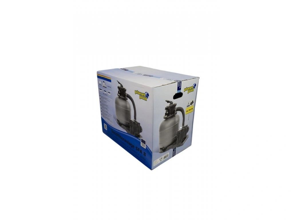 Písková filtrace je srdcem každého bazénu, které zajišťuje, aby voda v bazénu byla kvalitní a krásně čistá. Filtrace SFA 8 je určená pro bazény s objemem do 40 m3. Filtrační nádoba je vyrobena z kvalitního polypropylenu, pojme 30 kg filtračního písku a odolává korozi a běžné bazénové chemii. Filtrace má výkonné čerpadlo o výkonu 550W a je vybavena předfiltrem hrubých nečistot, ve kterém se zachytí všechny větší nečistoty. Součástí filtrační nádoby je praktický vypouštěcí ventil. Hlava filtrace je vybavena 6cestným ventilem, tělo filtrace je usazeno na stabilní základně. Díky silnému čerpadlu je filtrace vhodná pro uživatele, kteří potřebují do filtračního okruhu připojit bazénové příslušenství (např. solární ohřev, vysavač). Filtrace je určena pro venkovní použití a je odolná proti povětrnostním vlivům.