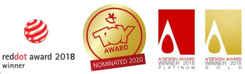 - Certifikovaný produkt s oceněním za design – Red Dot Design Award, Toy Award, A´DESIGN