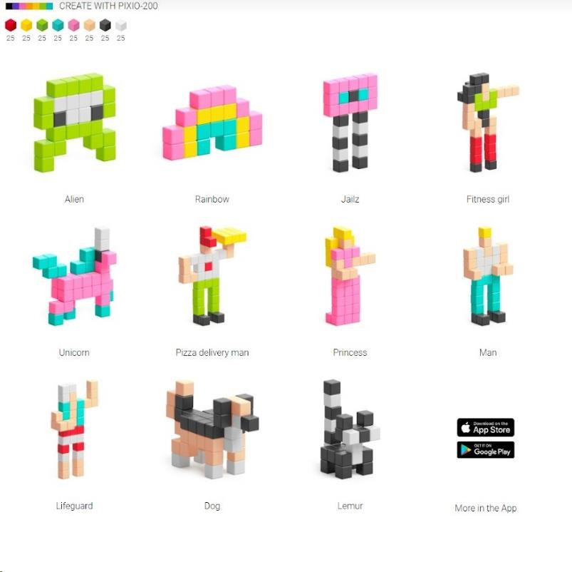 DESIGNOVÁ ŘADA PIXIO-200 obsahuje 200 bloků PIXIO v osmi dokonale spárovaných barvách, které