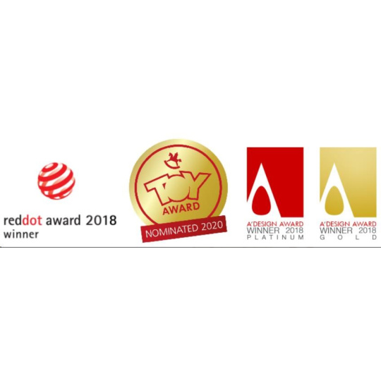 - Certifikovaný produkt s oceněním za design – Red Dot Design Award, Toy Award, A´DESIGN