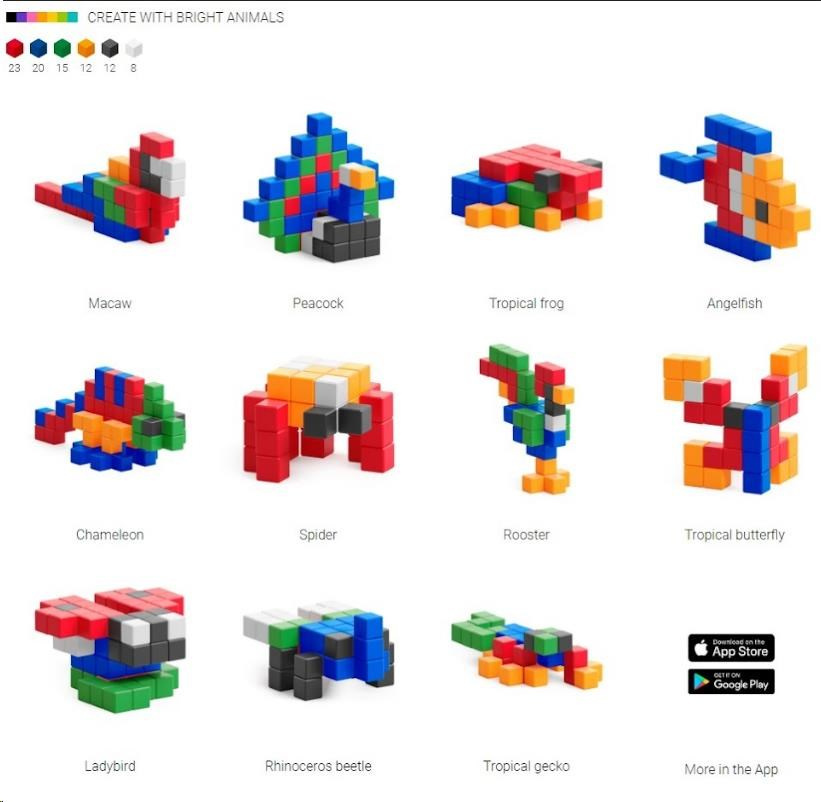 až budete připraveni, přejděte k vytváření vlastních návrhů. S touto sadou postavíte mnoho zvířat