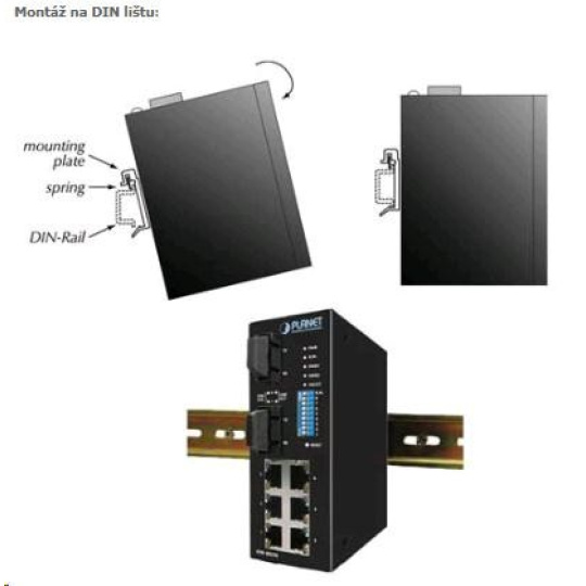 Planet switch IGS-801T, průmysl.verze 8x10/100/1000, DIN, IP30, -40 až 75°C, 12-48V