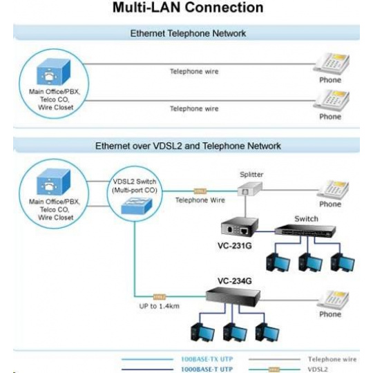 Planet VC-231G, Eth. VDSL2 konvertor, 1000Base-T, master/slave, profil 30a, G.993.5 Vectoring, G.INP, RJ-11